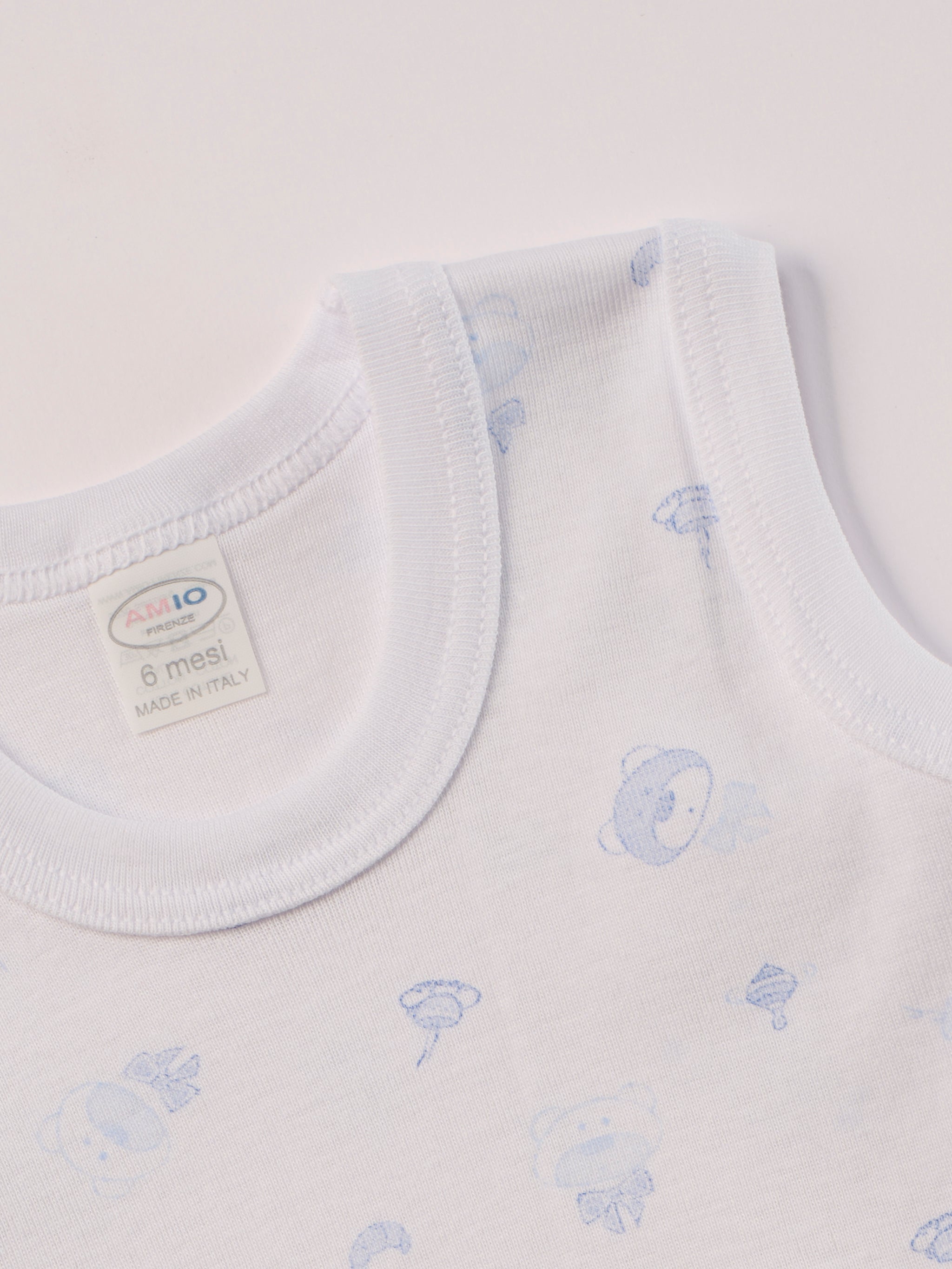 Baby Body ärmellos weiß mit blauen Bärchen | 100% organische Baumwolle