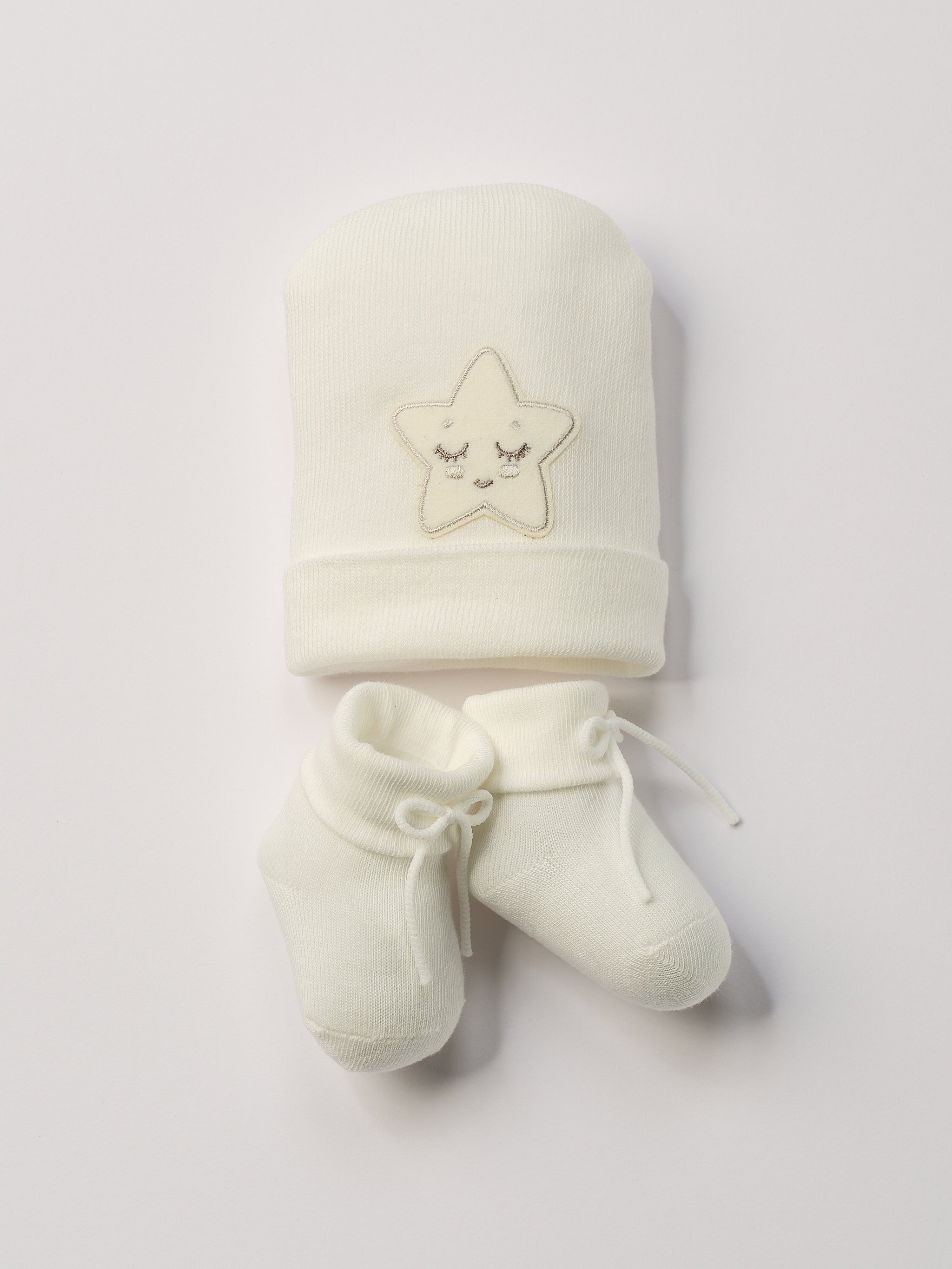 AMIO Firenze cremefarbige Set aus Baby Socken und Mütze mit Stern-Applikation