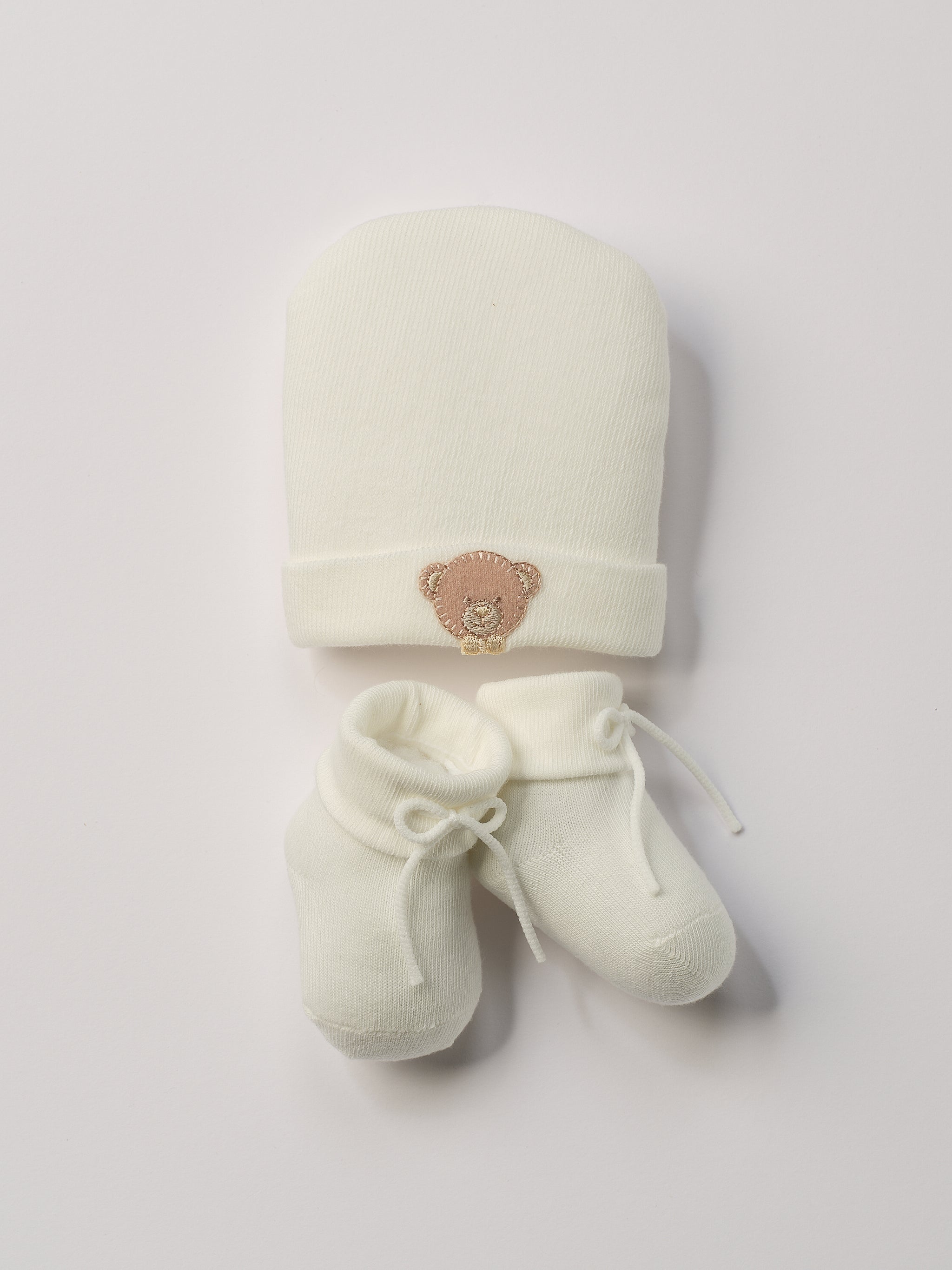 AMIO Firenze Set aus Baby Socken und Mütze mit Bärchen-Applikation