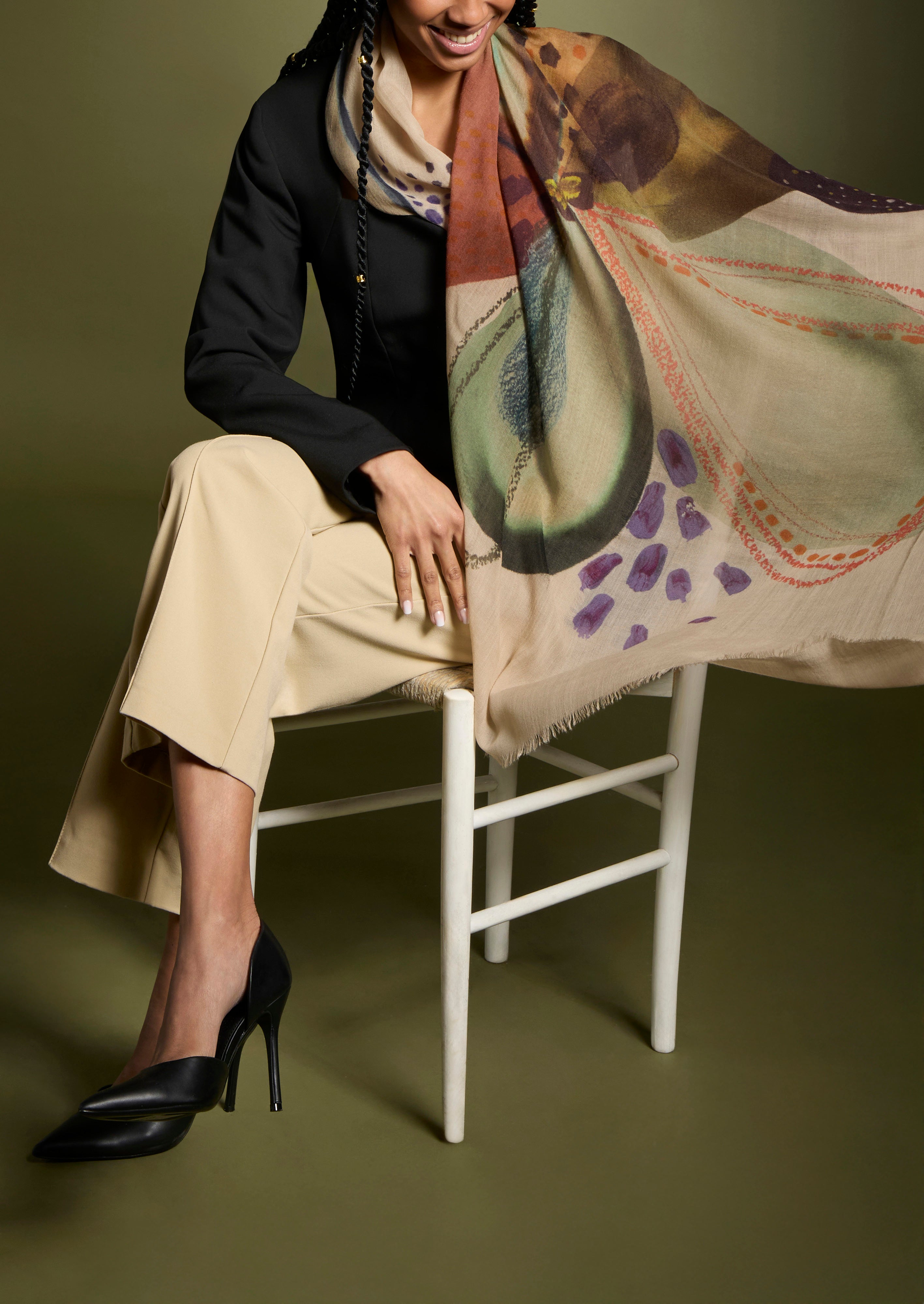 AMIO Firenze – bedruckter Schal aus 100% Wolle in beige
