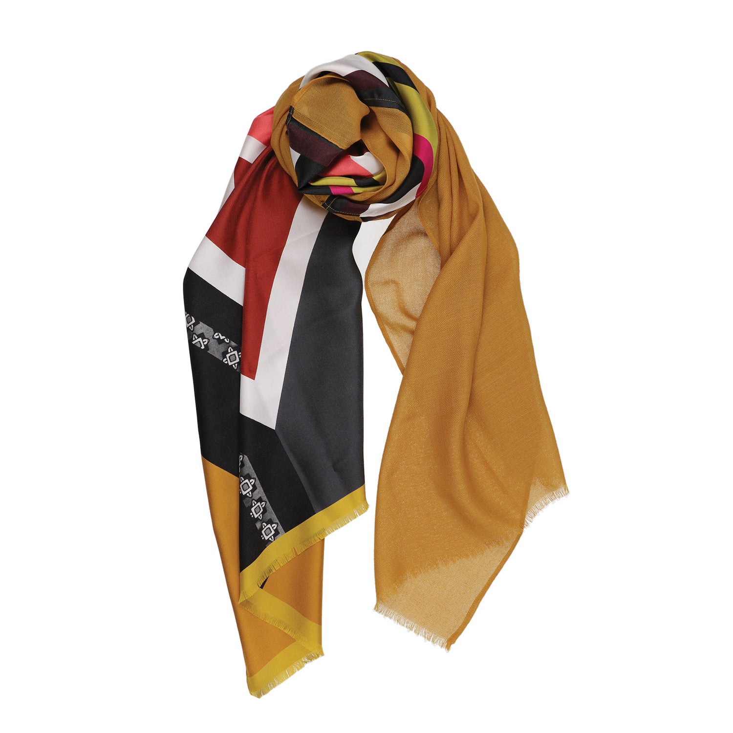 AMIO Firenze bedruckter Schal aus 60% Seide und 40% Wolle in senape