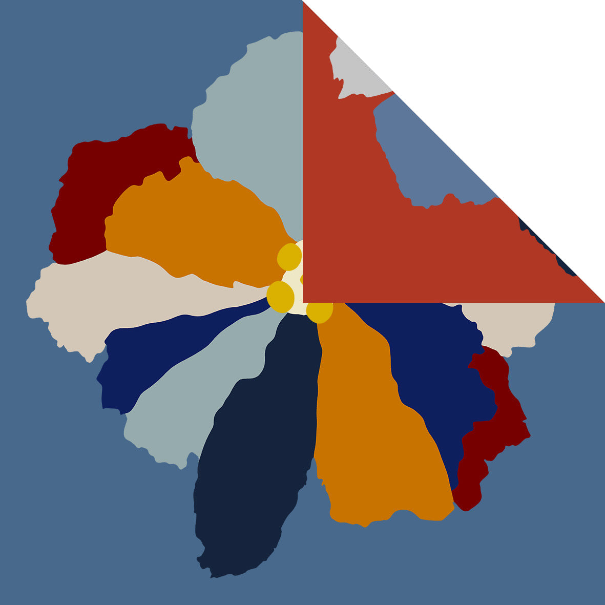 AMIO Firenze – Doppelseitig bedrucktes Seidentuch aus 100% Seidentwill mit Blüte in blau