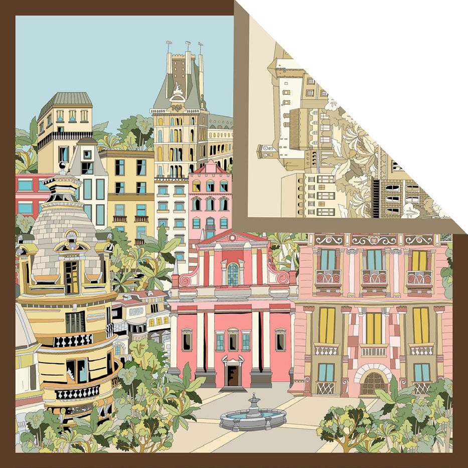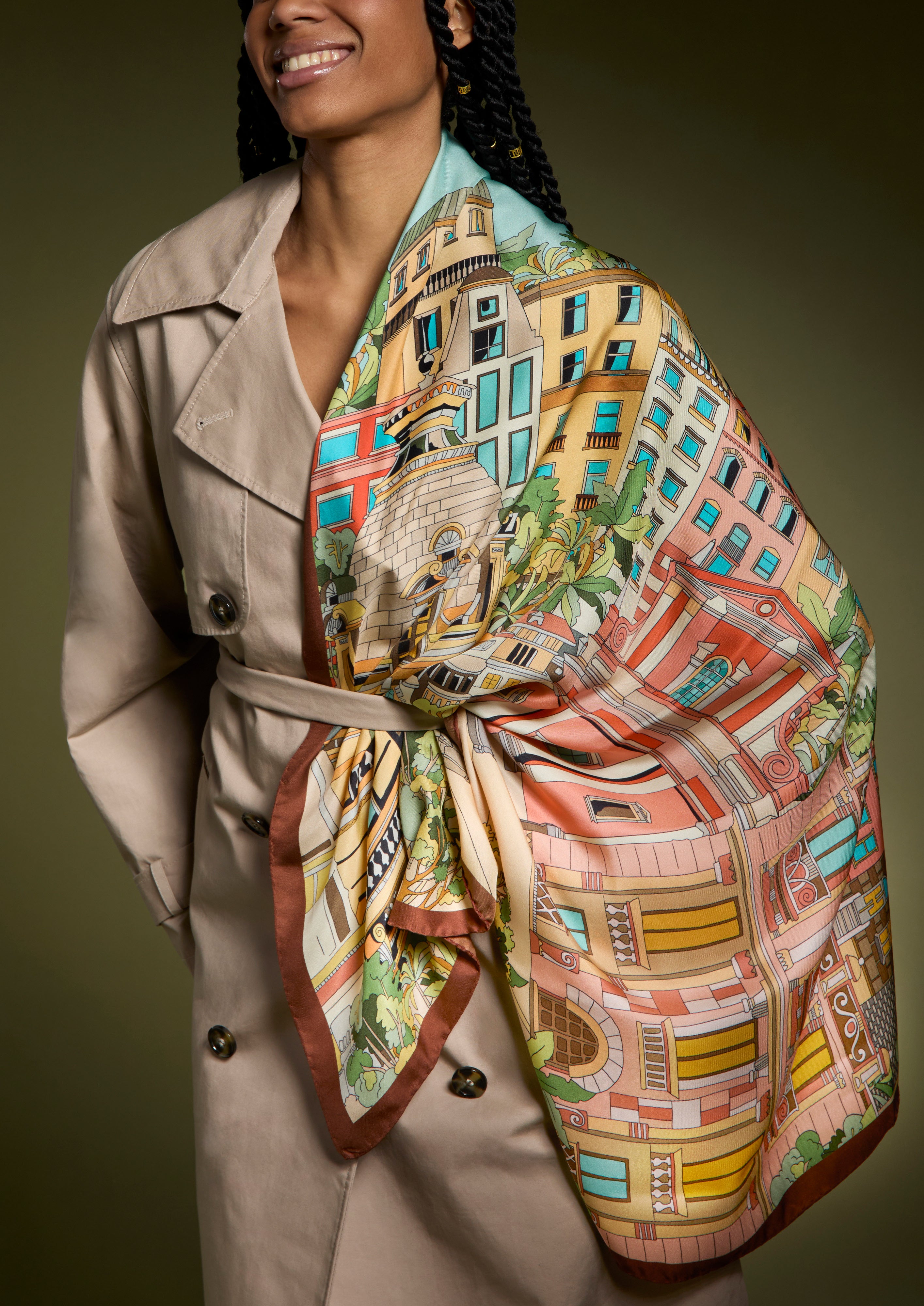 AMIO Firenze – Doppelseitig bedrucktes Seidentuch aus 100% Seidentwill mit City-Motiv