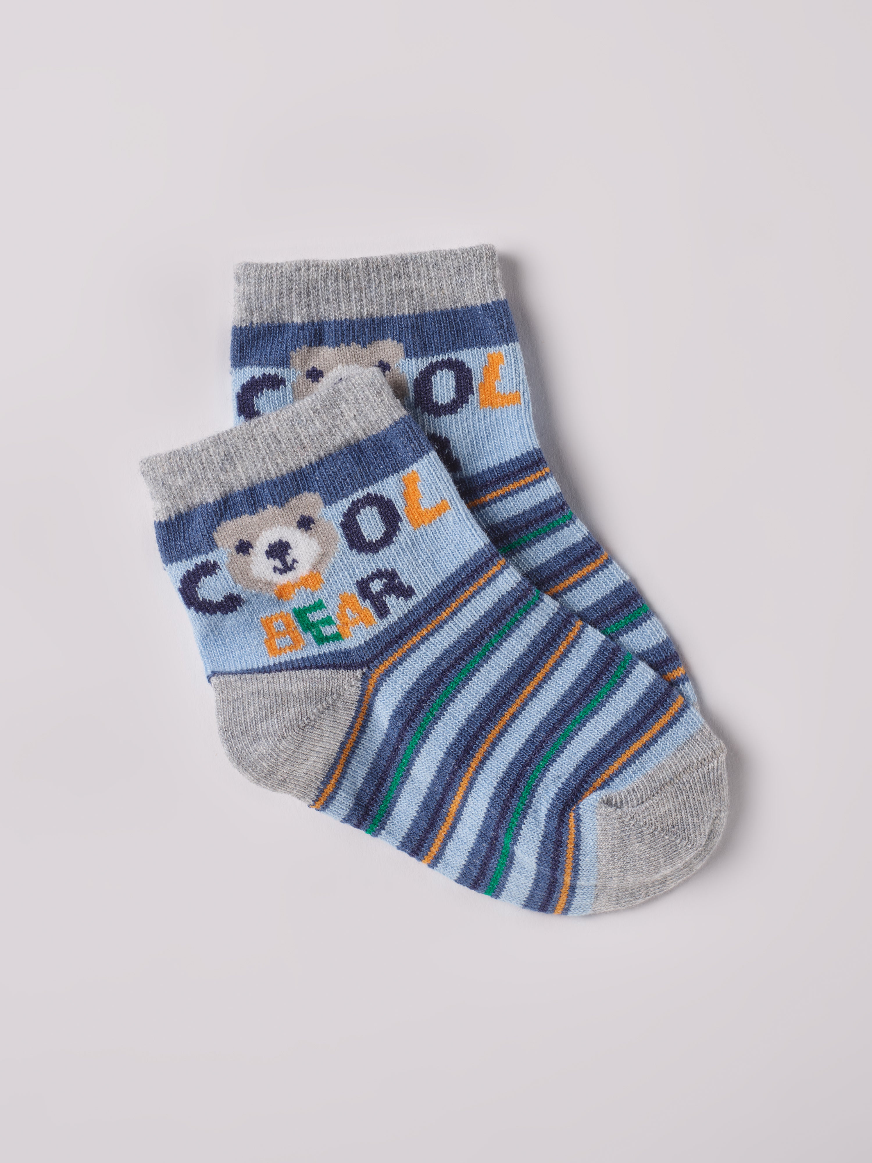 AMIO Firenze hellgestreifte Socken für Baby Jungen mit Cool Bear Motiv