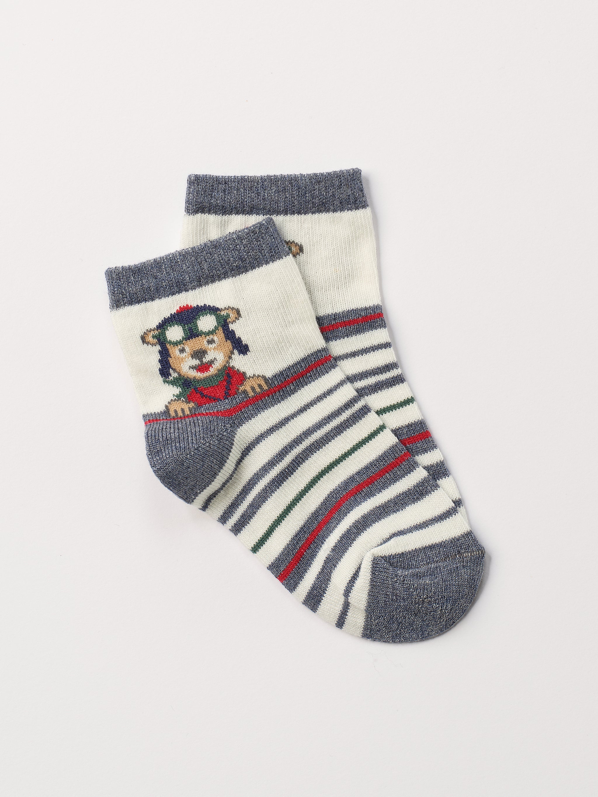 AMIO Firenze hellblau gestreifte Socken für Baby Jungen mit Bärchen Motiv