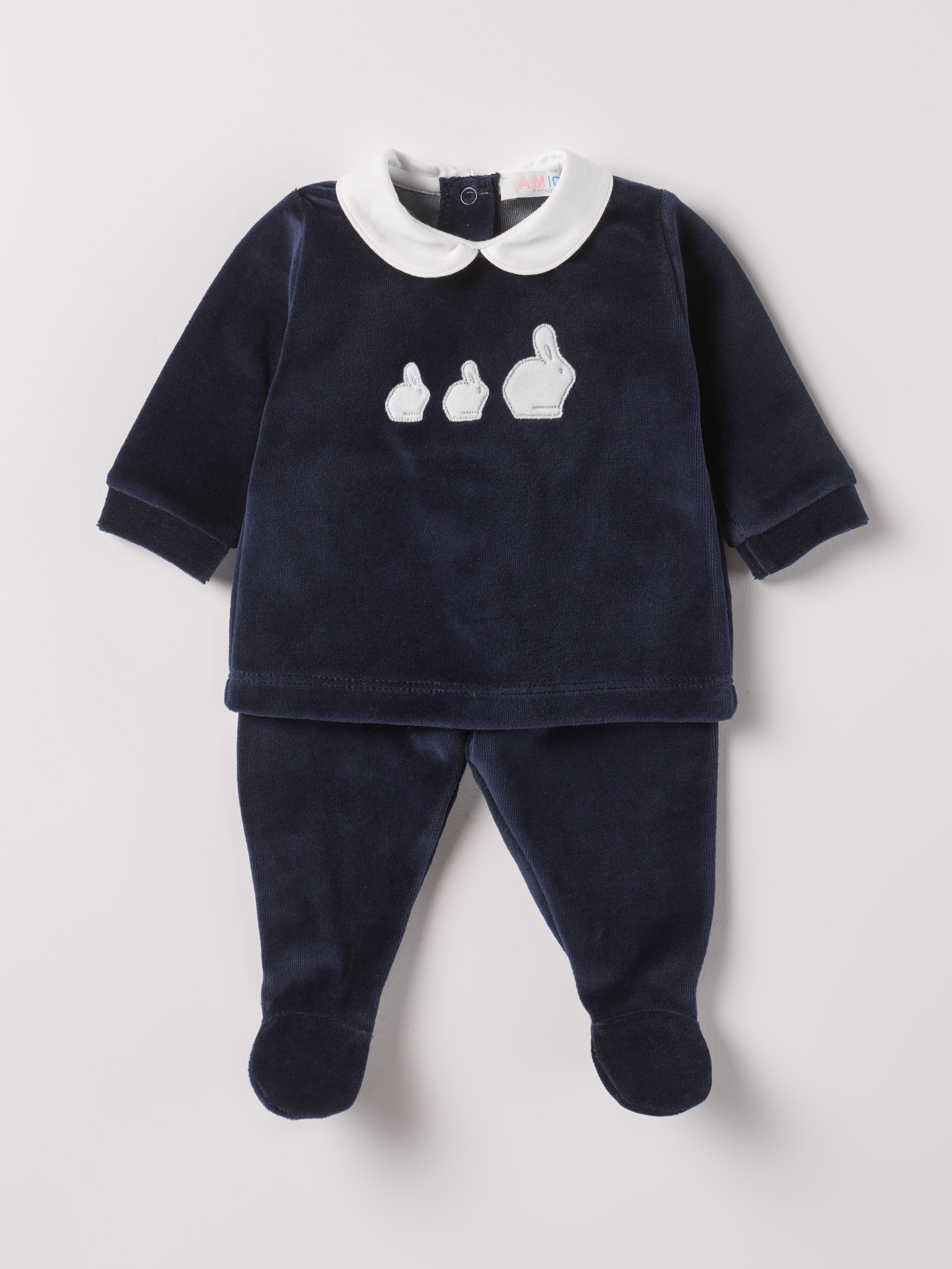 Der weiche und wärmespendende Zweiteiler von AMIO Firenze mit weißem Kragen und Hasenapplikation ist der perfekte Begleiter für den Alltag in der kalten Jahreszeit. Maximaler Tragekomfort, gepaart mit einer herausragenden Passform aus Samt (Ciniglia). Das Modell hat einen praktischen Schnitt, um etwa die Windel schnell und unkompliziert wechseln zu können. Das Set aus Oberteil und Hose ist vielseitig kombinierbar. Ein AMIO Firenze Must-Have für jede Grundausstattung.