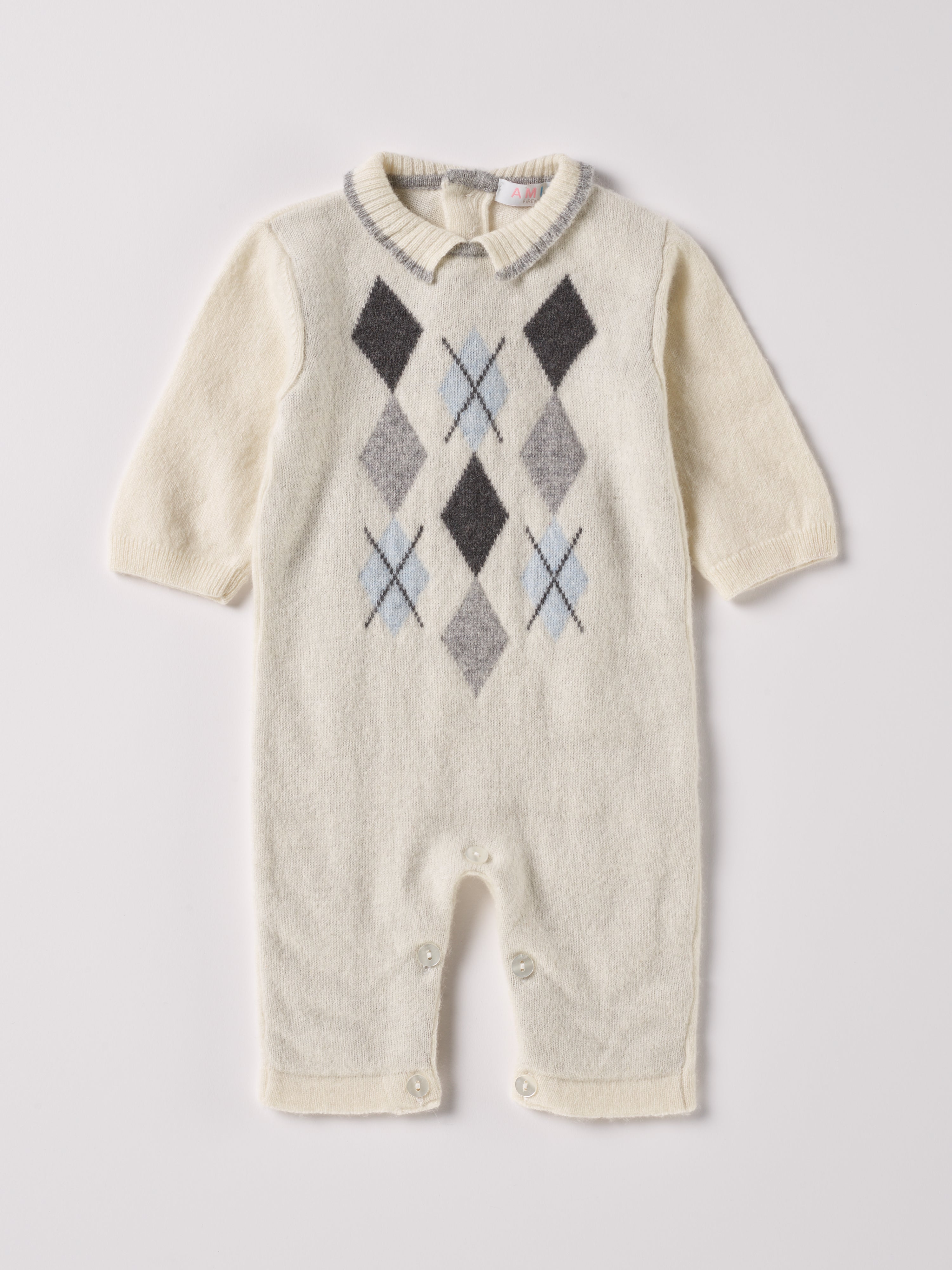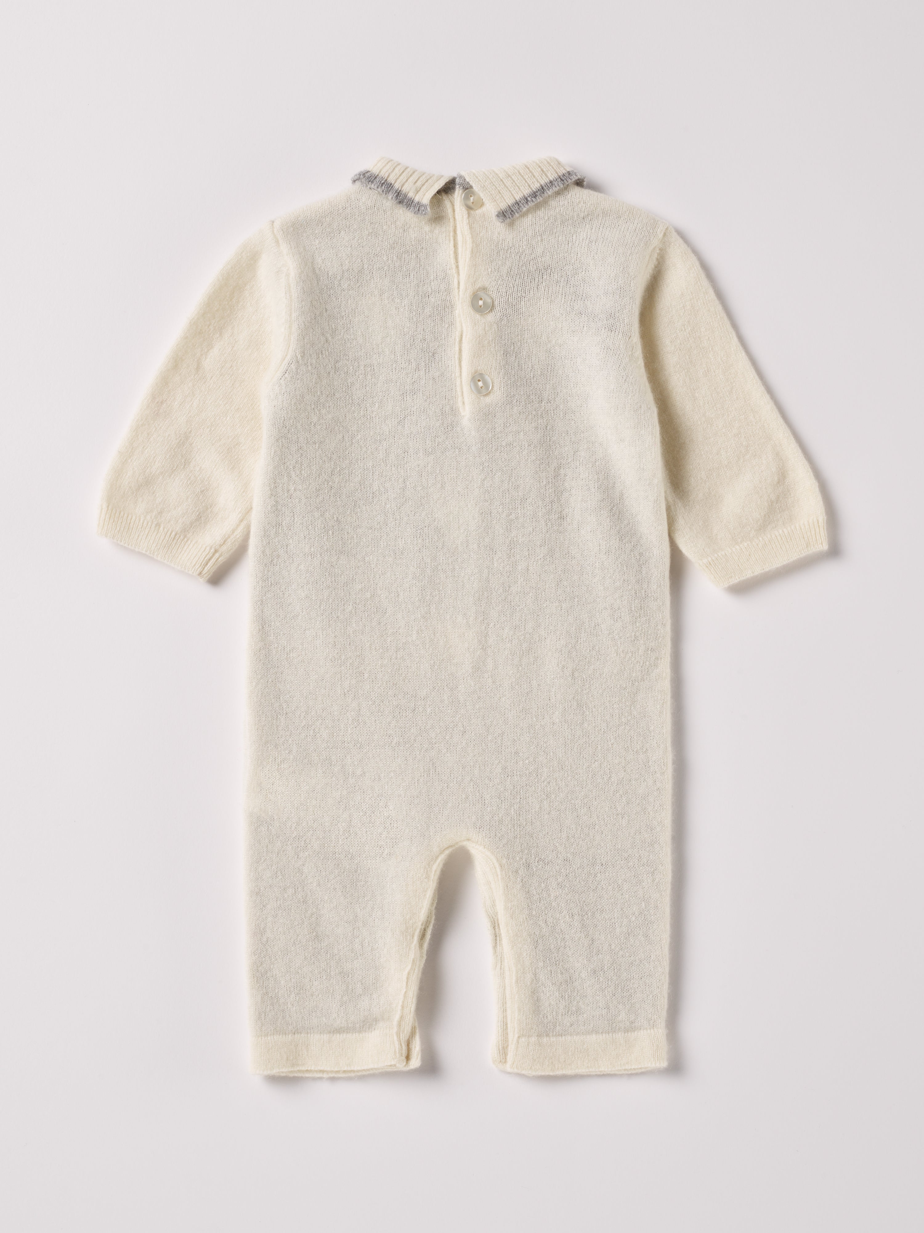 AMIO Firenze cremefarbiger Baby Strickoverall aus Kashmir-Merinowolle-Mischung