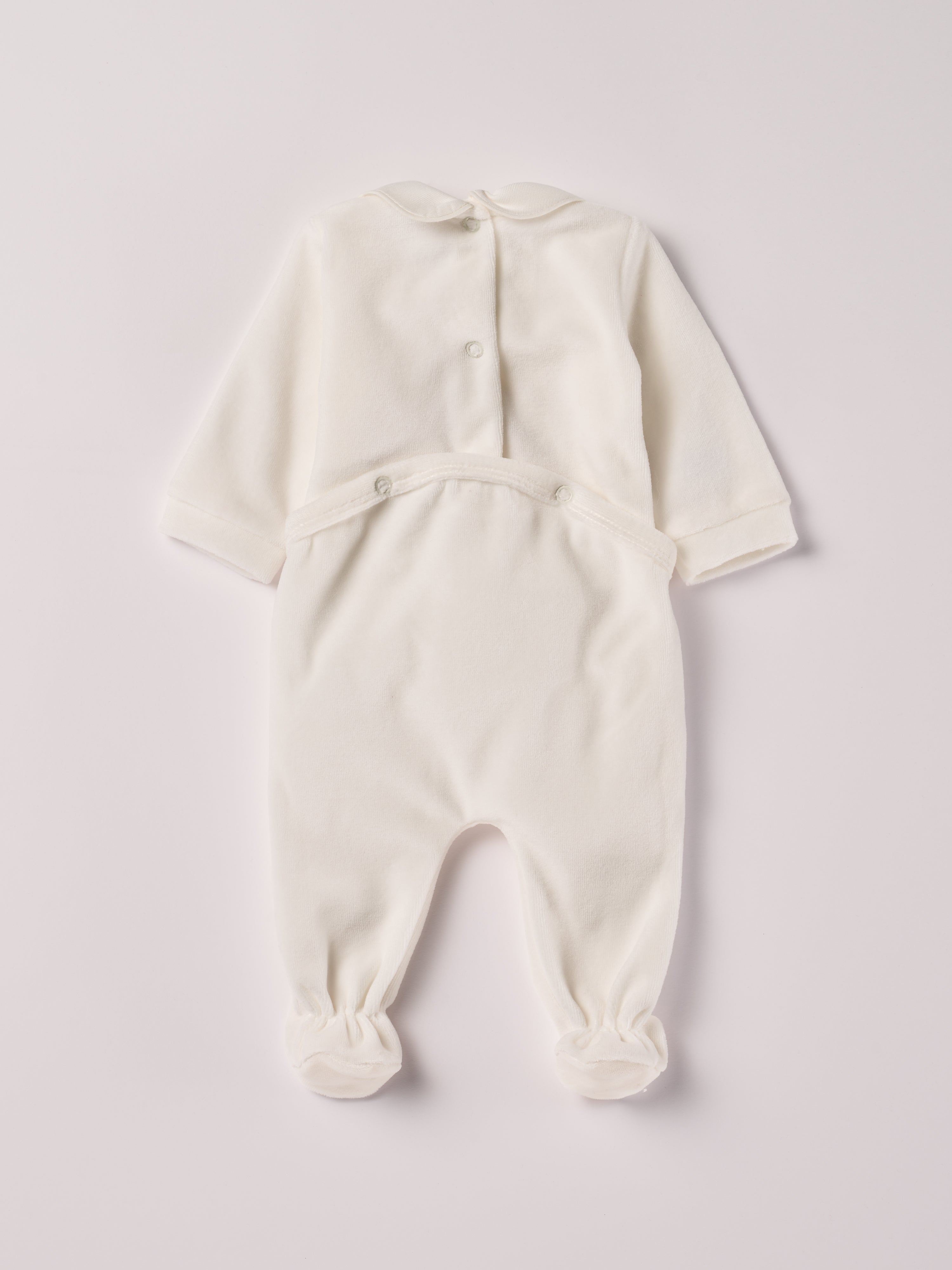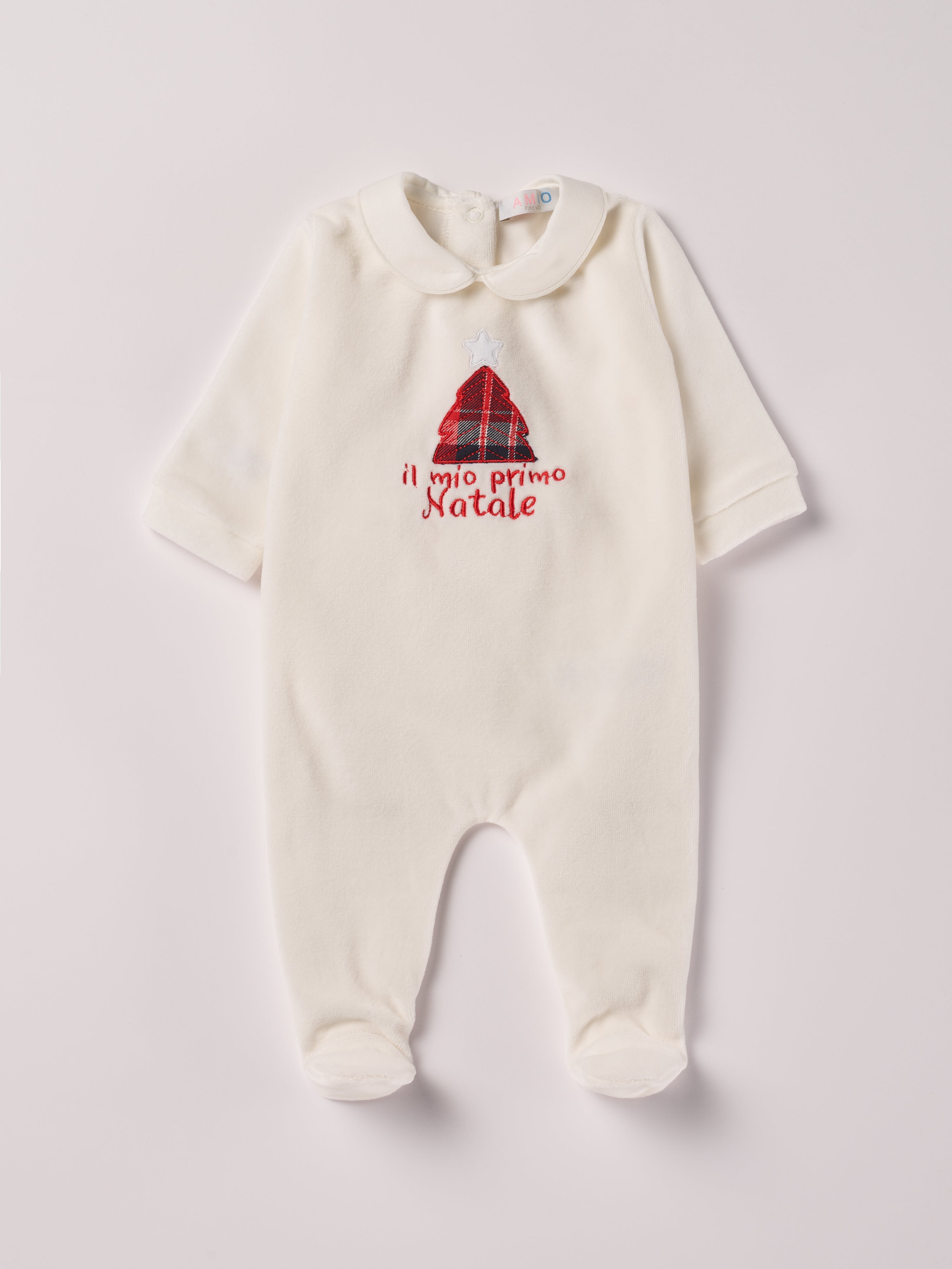 AMIO Firenze cremefarbiger Weihnachtsstrampler mit Kragen und Tannenbaumapplikation