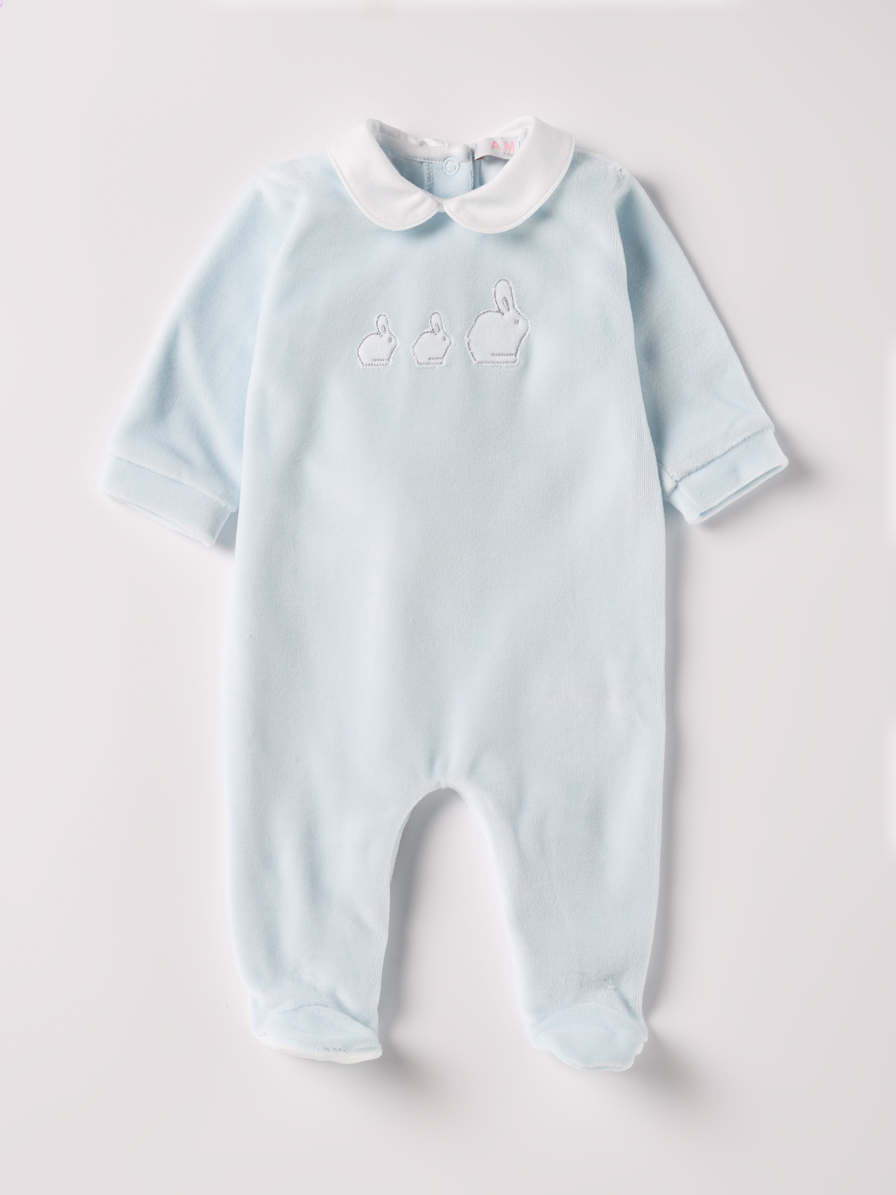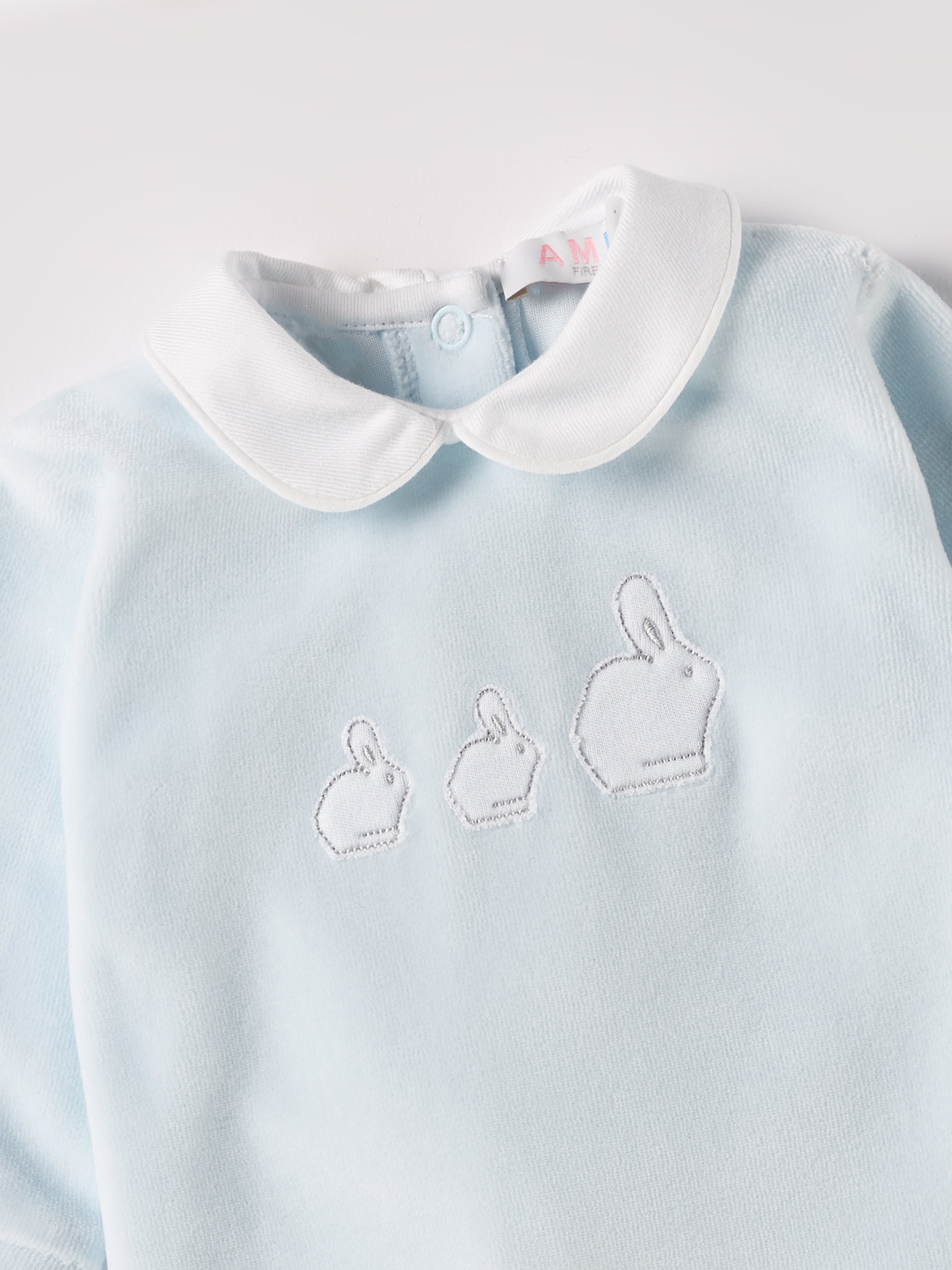 AMIO Firenze himmelblauer Strampler mit Kragen und Hasenapplikation